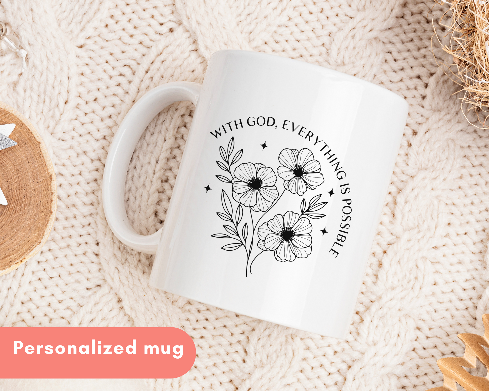 This mug is your daily reminder that With God, Everything is Possible.